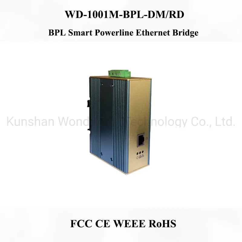BPL Smart Powerline Ethernet Bridge is an industrial powerline communication product developed by WonderTek. The product adopts the ITU-T G.9960 G.hn communication protocol standard, at present has been widely used in intelligent manufacturing, intelligent building, intelligent city street light monitoring, smart meters, solar panels and communications in dangerous environment, Marine applications, automotive applications, aerospace applications, railway, mining, intelligent storage, intelligent sorting, automatic garage cable or sliding contact line, and many other field.