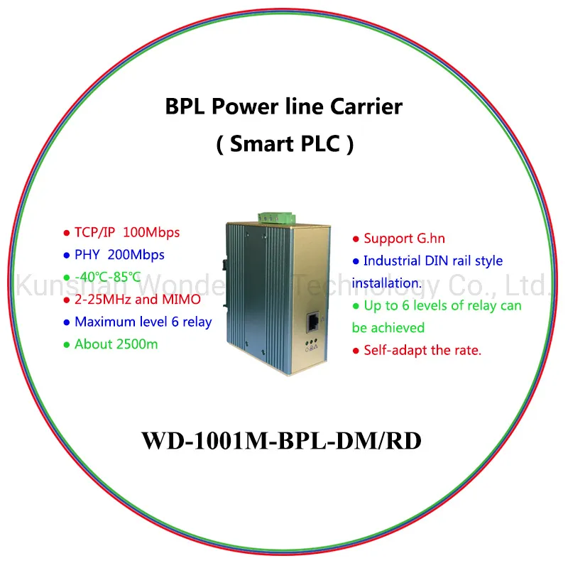 BPL Smart Powerline Ethernet Bridge is an industrial powerline communication product developed by WonderTek. The product adopts the ITU-T G.9960 G.hn communication protocol standard, at present has been widely used in intelligent manufacturing, intelligent building, intelligent city street light monitoring, smart meters, solar panels and communications in dangerous environment, Marine applications, automotive applications, aerospace applications, railway, mining, intelligent storage, intelligent sorting, automatic garage cable or sliding contact line, and many other field.