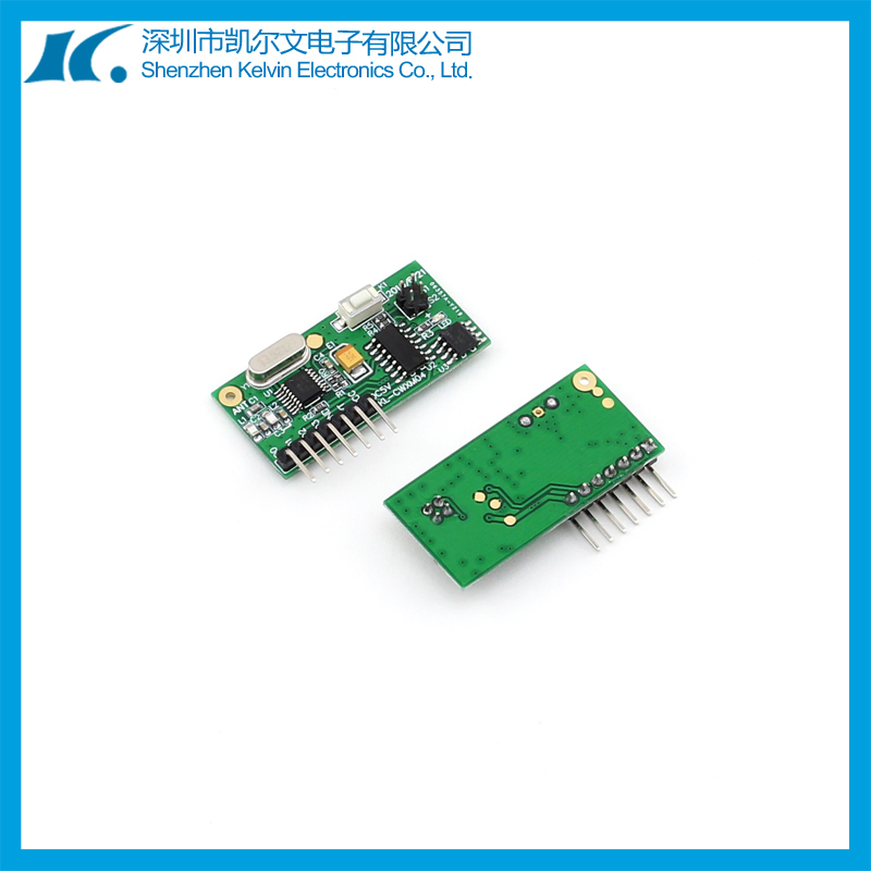 Popular learning code RF wireless circuit board KL-CWXM04KL-CWXM04 adopts American imported high sensitivity RF IC MICRF211AYQS with super heterodyne circuit. It is highly integrated with very few components on the PCB, so that it has good quality, strong anti-static protection, high sensitivity, stable and reliable performance. It decodes by MCU that supports fixed code with 2262 chip and learning code with 1527 chip. It's widely used in remote garage door opener, auto gates as retract type, brakes, factory automatic, communication and security system etc.