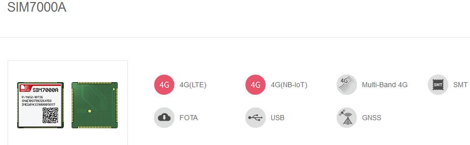 SIM7000A NB IoT SIMCom 4G MODULE FOR SMART HOME,NB IOT IN WIRELESS NETWORKING The SIM7000E is Tri-Band LTE-FDD and Dual-Band GPRS/EDGE module solution in a SMT type which supports LTE CAT-M1(eMTC) and NB-IoT up to 375kbps data transfer.It has strong extension capability with rich interfaces inclu......