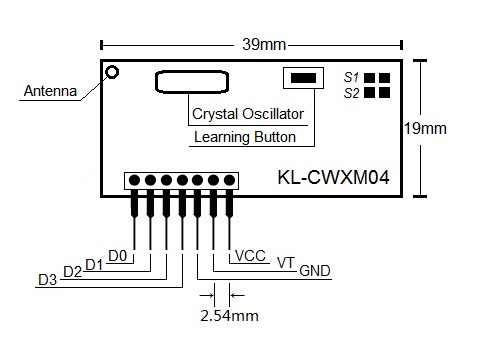 KL-CWXM04 adopts American imported high sensitivity RF IC MICRF211AYQS with super heterodyne circuit. It is highly integrated with very few components on the PCB, so that it has good quality, strong anti-static protection, high sensitivity, stable and reliable performance. It decodes by MCU that supports fixed code with 2262 chip and learning code with 1527 chip. It's widely used in remote garage door opener, auto gates as retract type, brakes, factory automatic, communication and security system etc.