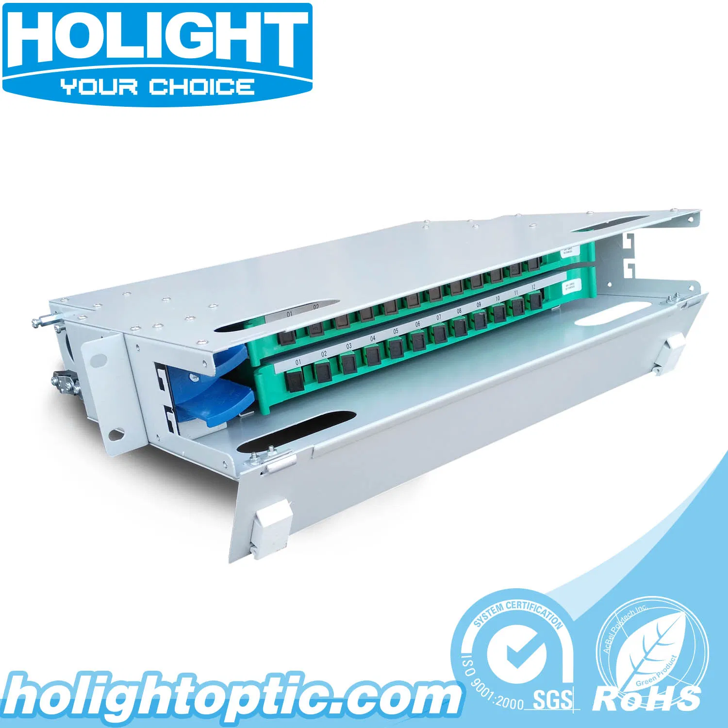 ·Rack-mount Fiber Optic Distribution Frame is modulized design with drawable trays inside and cold-rolled steel box. It could be pre-installed with various kinds of fiber optic adapters and pigtails.