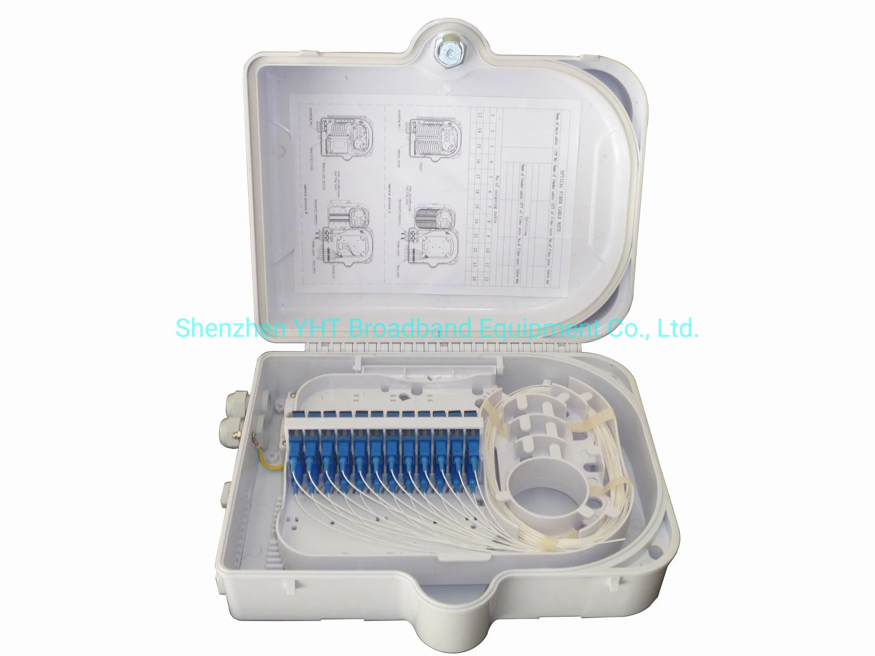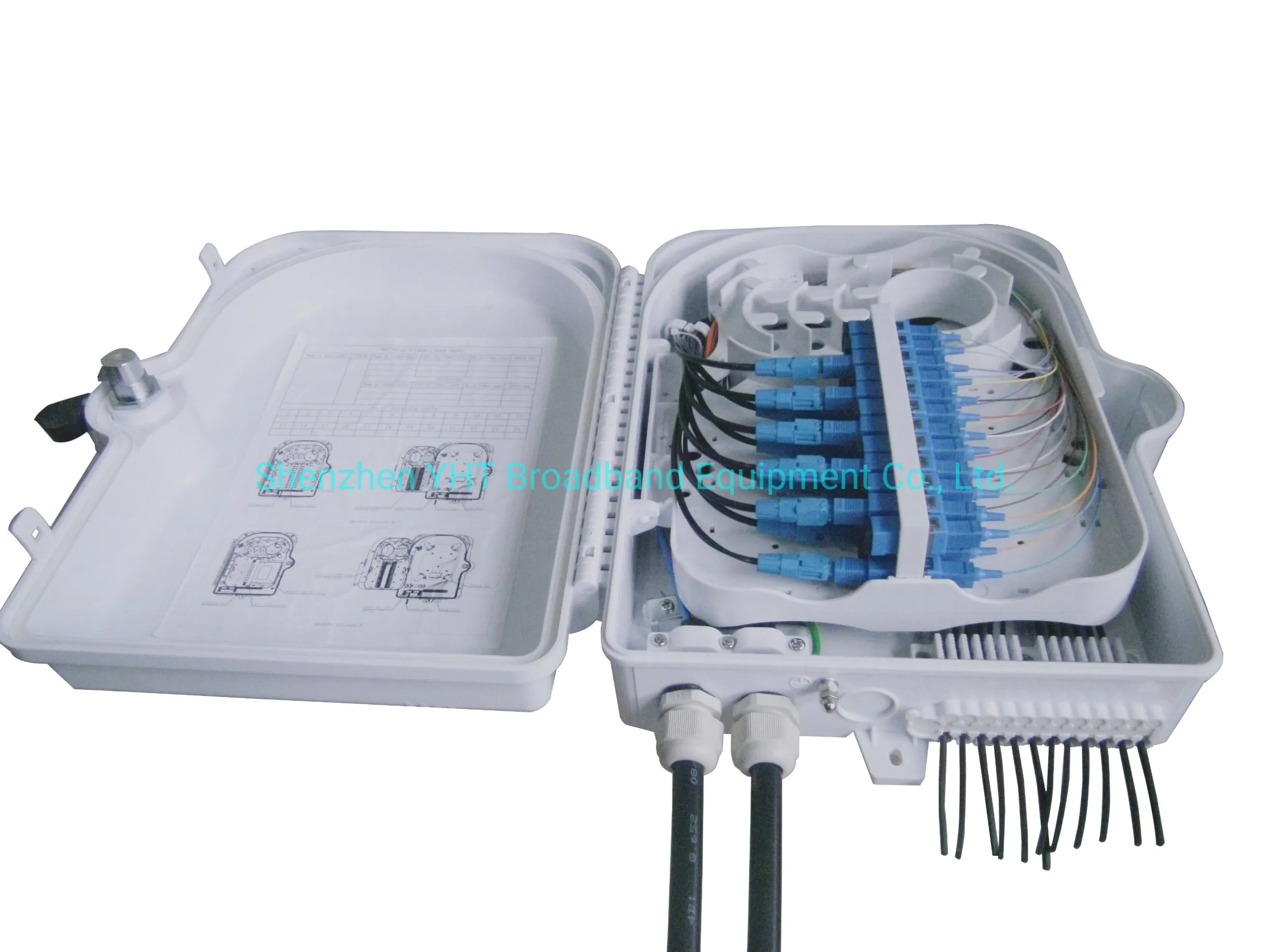 | OTB-0216-E1 | Max. 24fibers | 274.3x334.2x114.1mm | Can load max.2pcs splitter box Can load max.24pcs SC simplex, FC simplex, LC duplex … adapters |