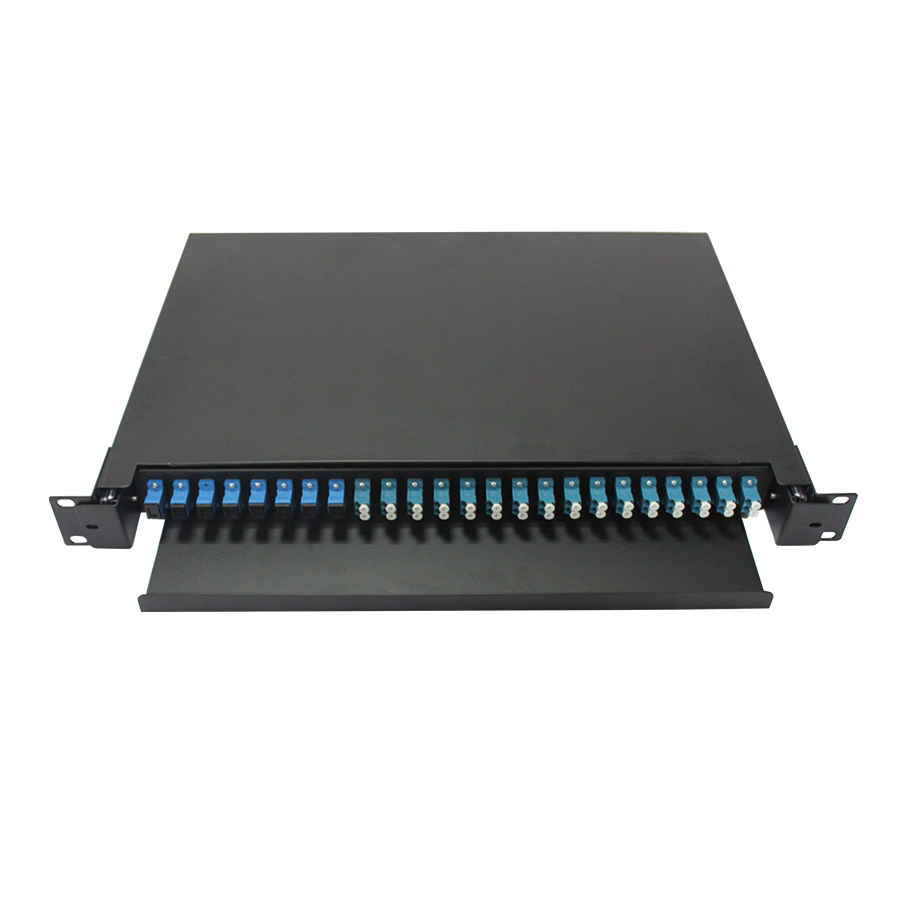 24 ports LC SM Dx Sliding Fiber patch panel with 16 pcs of LC SM Dx Adapter , with 8 pcs of SC Sx blank adapter , with 2x12 colored LC SM