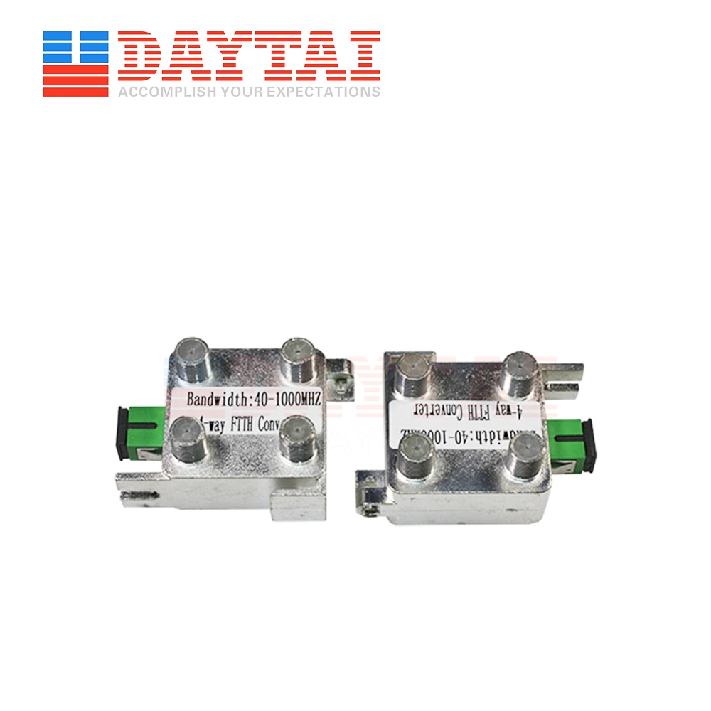 Description Passive 4 Way FTTH Optical Converter for Digital TV,input Optical Power:0~-15dbm,Optical Return Loss:>45db,Optical Receiver Wavelength:1100~1600 nm,Optical Fiber Type:Single Mode,Frequency Range:40-1000MHZ,SC/APC to F Female connector,Dimensions:45*65*20 mm,Net weight:0.055KG.Features......