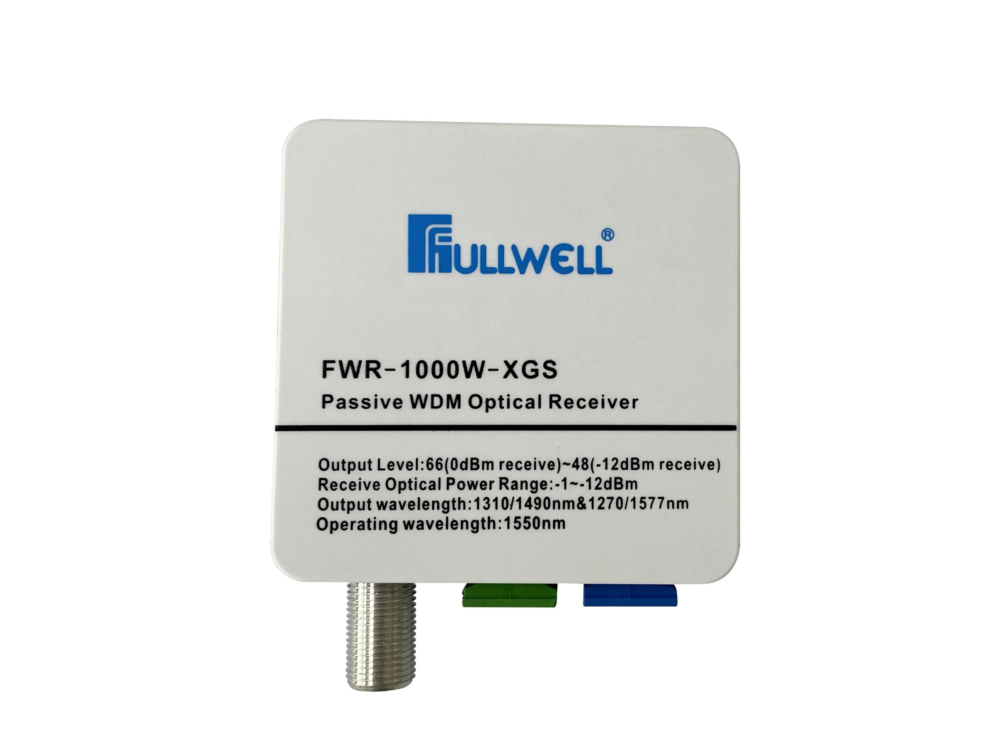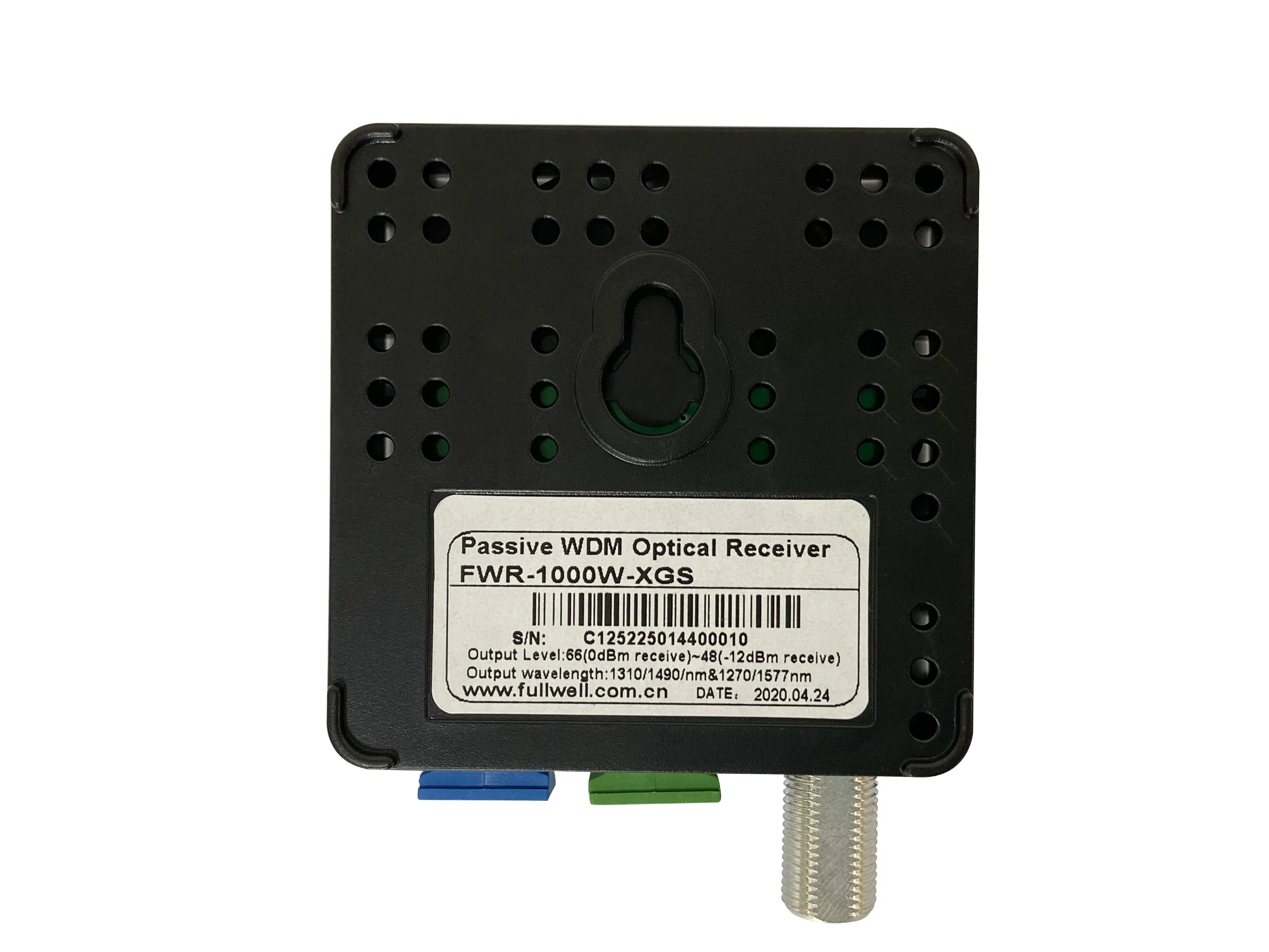 FWR-8610RW WDM optical receiver adopts high isolation and WDM technology to separate CATV and 10 Gigabit ONU signals, which can meet FTTH requirement of CATV + XG (S) -PON optical network, receiving 1550nm CATV signal and PON output signals (1310 / 1490nm & 1270 / 1577nm).