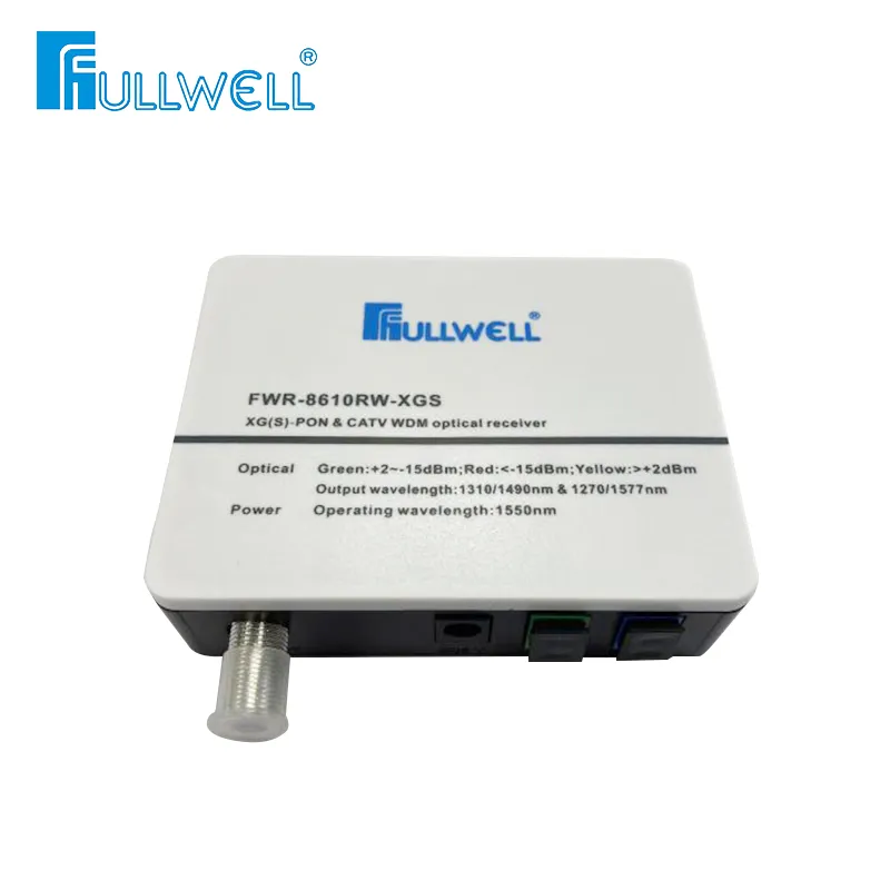 FWR-8610RW-XGS WDM optical receiver adopts high isolation and WDM technology to separate CATV and ONU signals, which can meet FTTH requirement of CATV + XPON or XG (S) -PON optical network, receiving 1550nm CATV signal and PON output signals (1310 / 1490nm & 1270 / 1577nm).