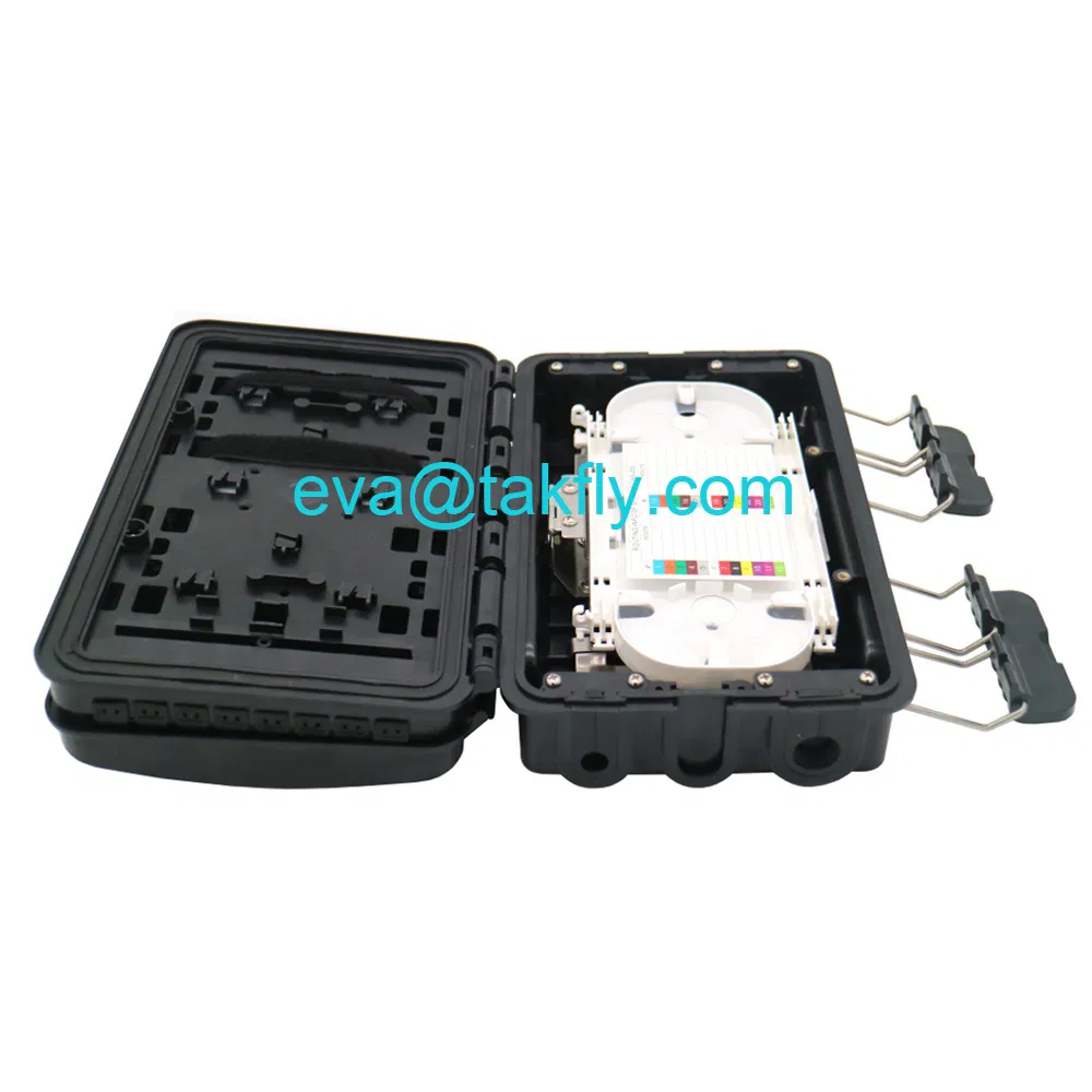 DescriptionThis new design fiber distribution box is designed for in-line application to provide a protected access point between the distribution cable and drop cable. This product can keep internal components away from outdoor environmental damage. Its flexible configuration support 3 cable in and 3 cable out. Cassette type optical splitter could be build-in. Good performance is useful in harsh environment.it integrates the splitting and distribution function in one termination box, can realize the splicing and branch of the optical cable, and is suitable for the cable connection of the optical communication equipment. Through the adapter of the termination box, the signal is drawn by the optical fiber jumper to realize the optical fiber distribution function; Also suitable for fiber cable and pigtails protective connection. The unique design of the box-shaped structure of the box can be used as a fiber splitting or splice box; the flip core can be turned over 180 degrees, which is more convenient to install the box and maintenance, after remove the flipping core it can be a splice closure to meet the user's different choices. Feature
