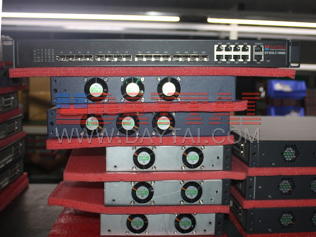 DT-GOLT-1016S completely meet relative standard of ITU G.984.x and FSAN, which is 1U rack-mounted device with1 USB interface, 4 uplink GE ports, 4 uplink optical ports, 2 10-gigabit uplink ports and 16 GPON ports, each GPON port supports the splitting ratio of 1:128 and provides downstream bandwidth of 2.5Gbps and upstream bandwidth of 1.25Gbps, system support 2048 GPON terminals accessing in for the most. This product meets the requirements in device performance and size of compact server room as the product has high performance and compact size, is convenient and flexible to use, and is easy to deploy as well. Moreover, the product meets the requirements of promoting network performance, improving reliability and reducing power consumption in the perspective of access network and enterprise network and is applicable to three-in-one broadcast television network, FTTP (Fiber to the premise), video monitoring network, enterprise LAN (Local Area Network), internet of things and other network applications with a very high price/performance ratio.