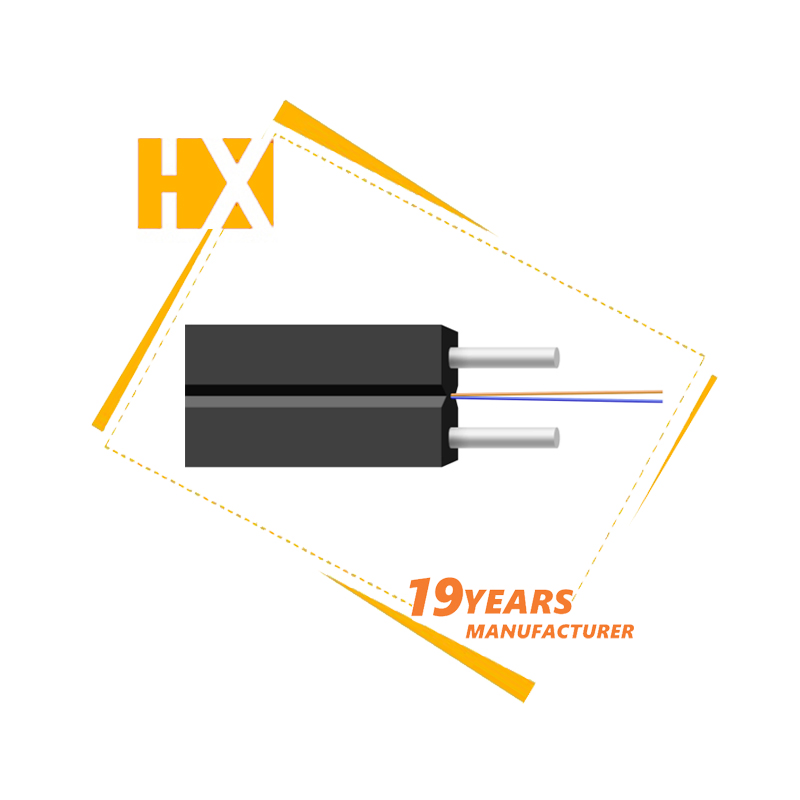 The optical fiber unit is positioned in the centre. Two parallel Fiber Reinforced Plastics (FRP) or steel wires are placed at the two sides. A steel wire as the additional strength member is also applied. Then the cable is completed with a black LSZH sheath.