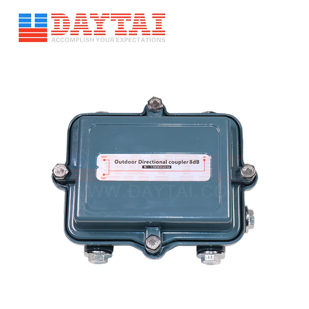 Description Outdoor Directional Coupler 1 Way CATV Sub-trunk tap,4dB,8dB,11dB,14dB,17dB,20dB,23dB,26dB,29dB,32dB,35dB,(it is optional),5-1000Mhz,RFI>110dB,in-out ports power pass 10A,in&out UNEF 5/8" port, tap ports F female port. SpecificationTap ValuedB481114172023262932Insertion Loss......