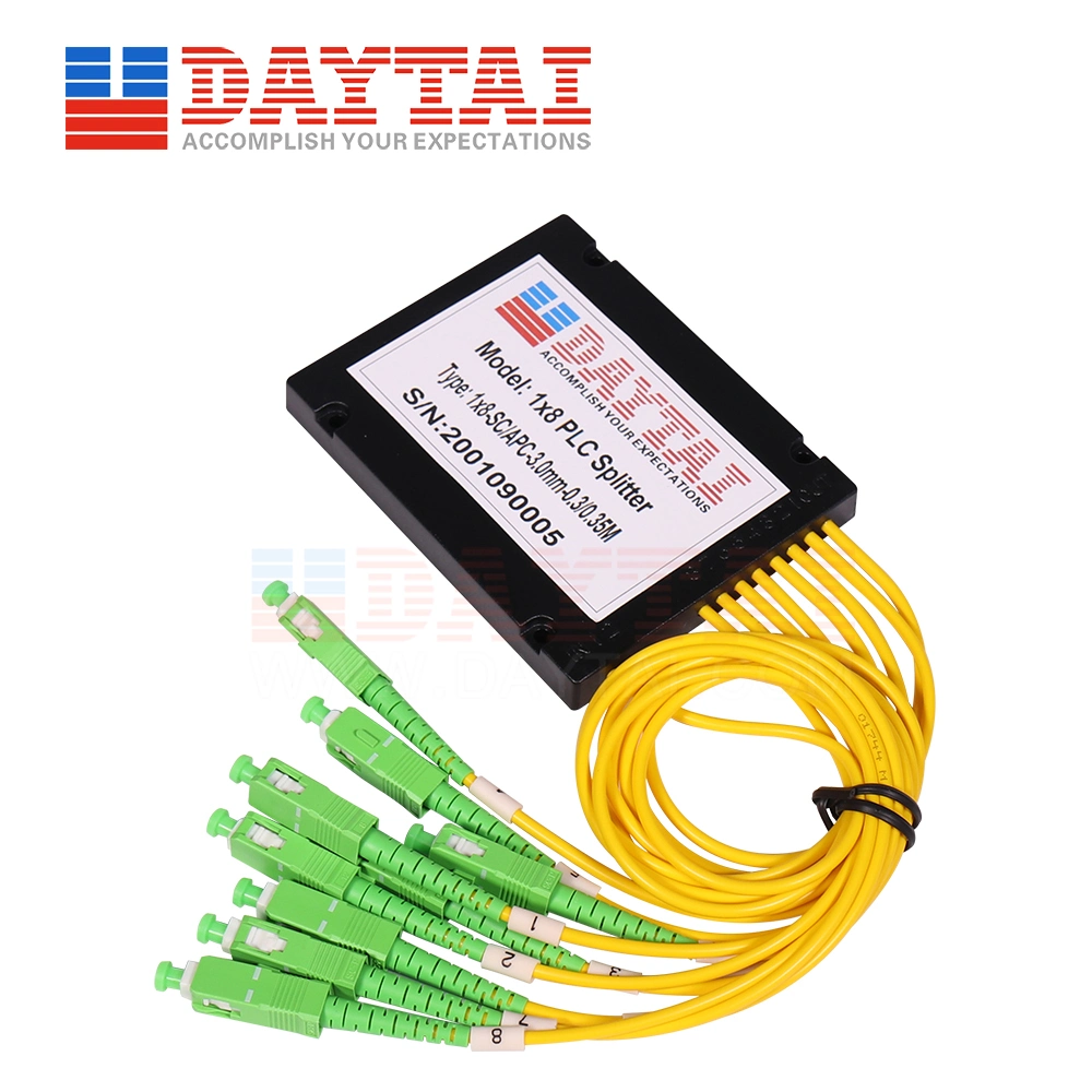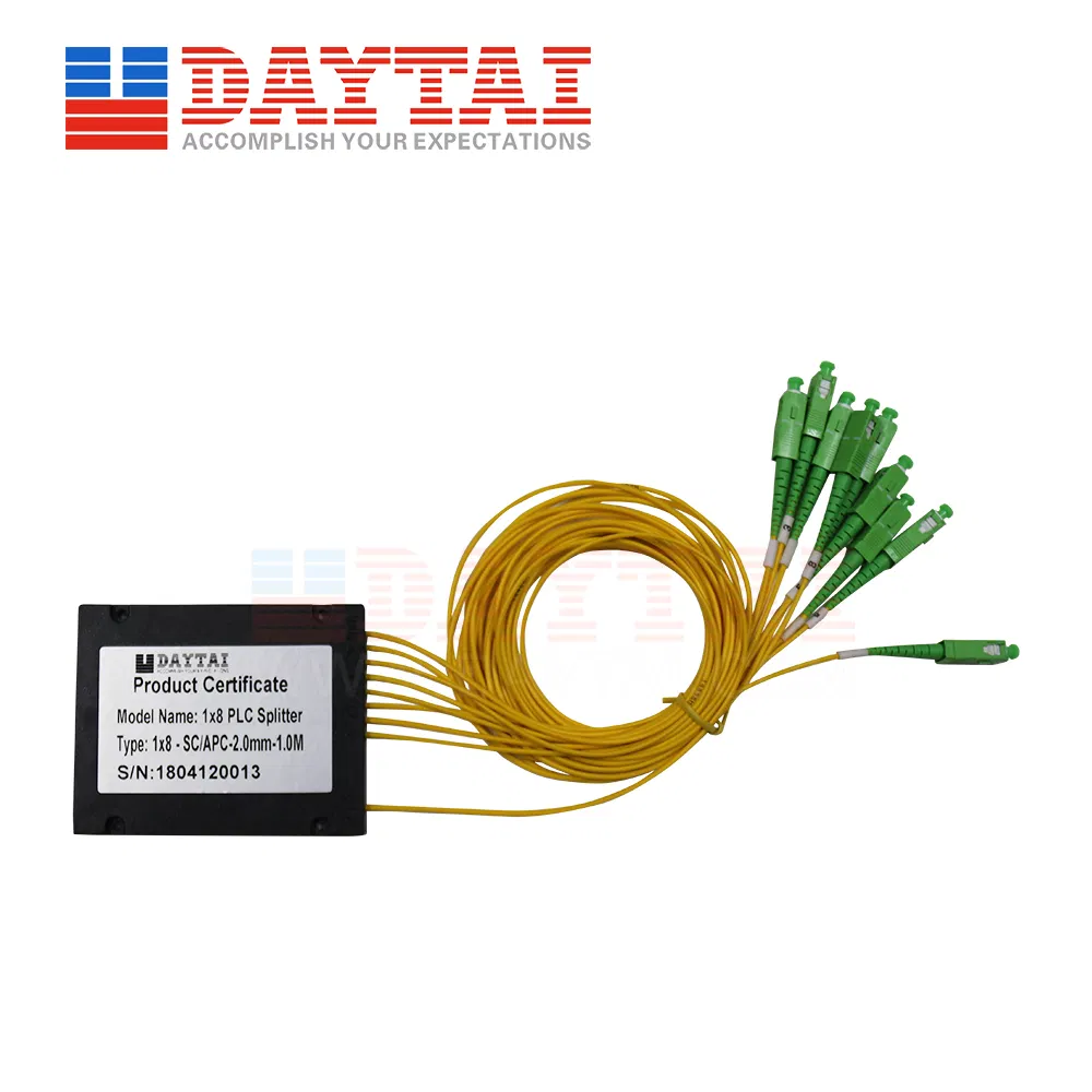 Plc Splitter 1x8 Abs Cassettes Fiber Optic Splitter Splice / Pigtailed Sc Apc Connector Box Type Fiber SplitterDescription 1x8 PLC Splitter ABS Box Type ,SM fiber,OD:2.0mm or 3.0mm pigtail,1m length, With SC/APC connector.FeaturesFTTHReliableMonitoringSmaller sizeCATV SystemGood UniformityNetwork ......