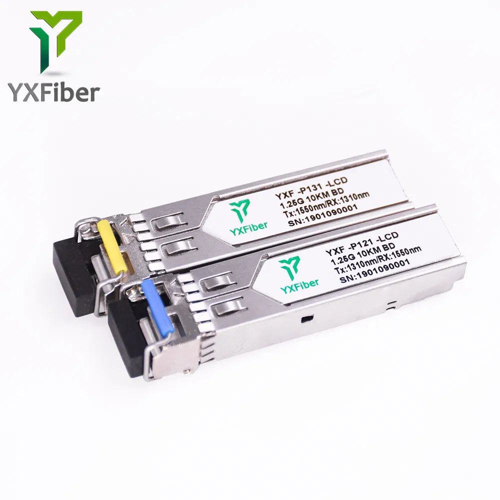 SFP 1.25G 10km 1310nm/1550nm SFP Module Duplex LC DDM Features : 1.Supports 1.25Gbps/1.0625Gbps bit rates2.Bi-Directional LC connector3.Hot-pluggable SFP footprint4.1310nm FP laser and1550nm PIN photo detector5.1550nm DFB laser and 1310nm PIN photo detector6.Applicable for 10Km SMF connection7.Low p......