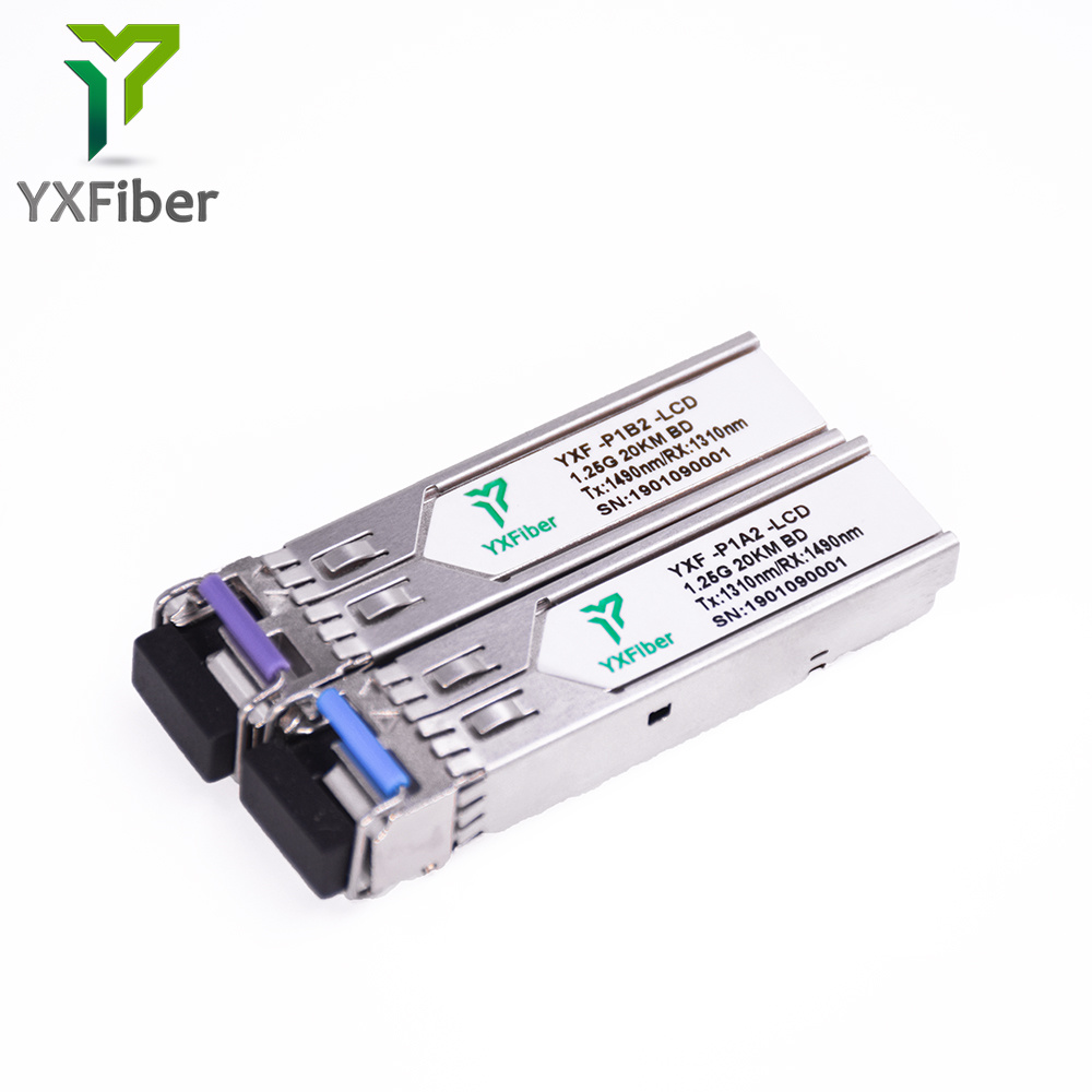 SFP-BIDI transceivers are high performance, cost effective modules supporting dual data-rate of 1.25Gbps/1.0625Gbps and 20km transmission distance with SMF.The transceiver consists of three sections: a FP/DFB laser transmitter, a PIN photodiode integrated with a trans-impedance preamplifier (TIA) and MCU control unit. All modules satisfy class I laser safety requirements. The transceivers are compatible with SFP Multi-Source Agreement (MSA) and SFF-8472. For further information, please refer to SFP MSA.