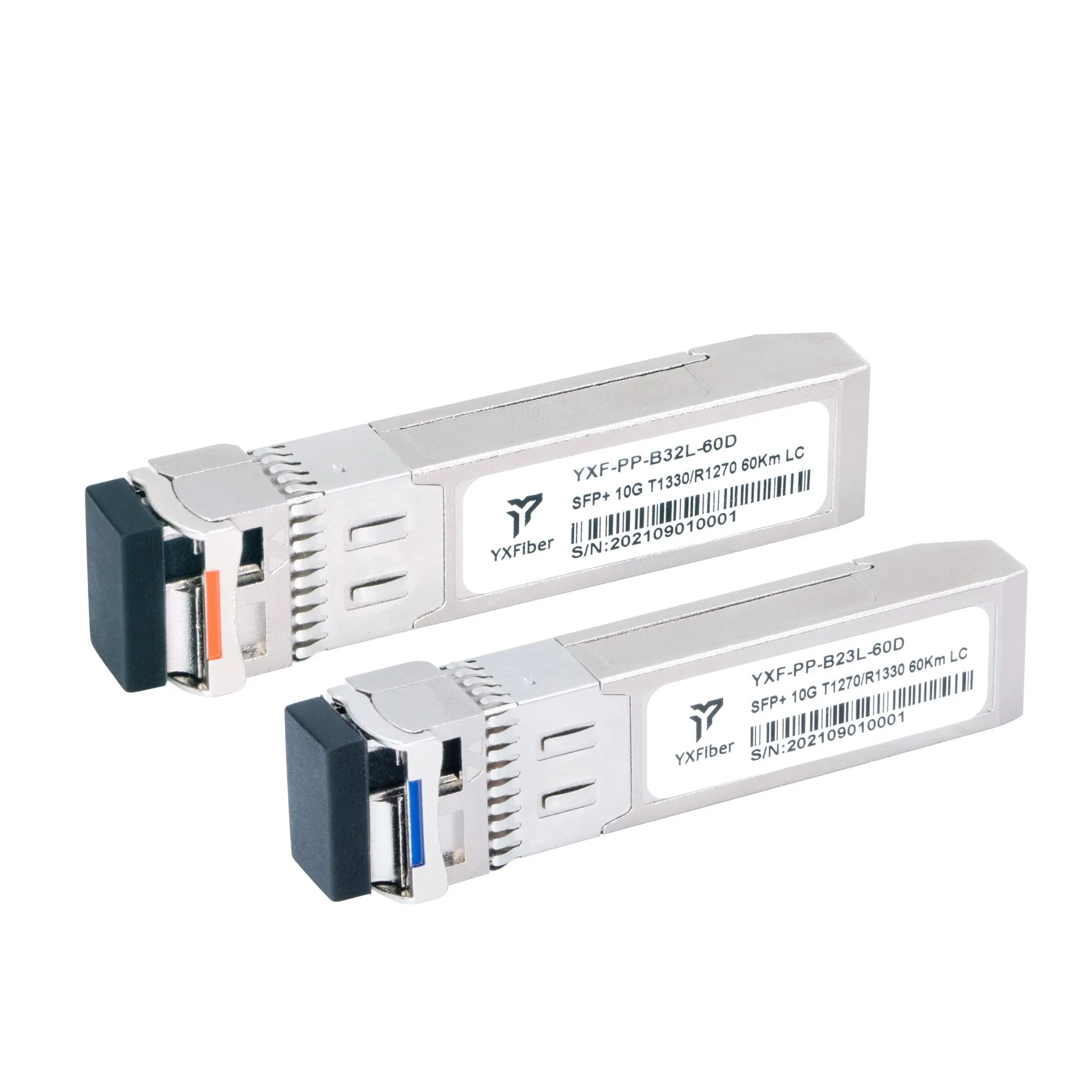 YXFiber 10G-SFP-60KM Duplex Enhanced Small Form Factor Pluggable SFP+ transceivers are designed for use in 10-Gigabit Ethernet links up to 60km over single mode fiber. They are compliant with SFF-8431,SFF-8432 and IEEE 802.3ae 10GBASE-LR/LW. The transceiver designs are optimized for high performance and cost effective to supply customers the best solutions for telecommunication.