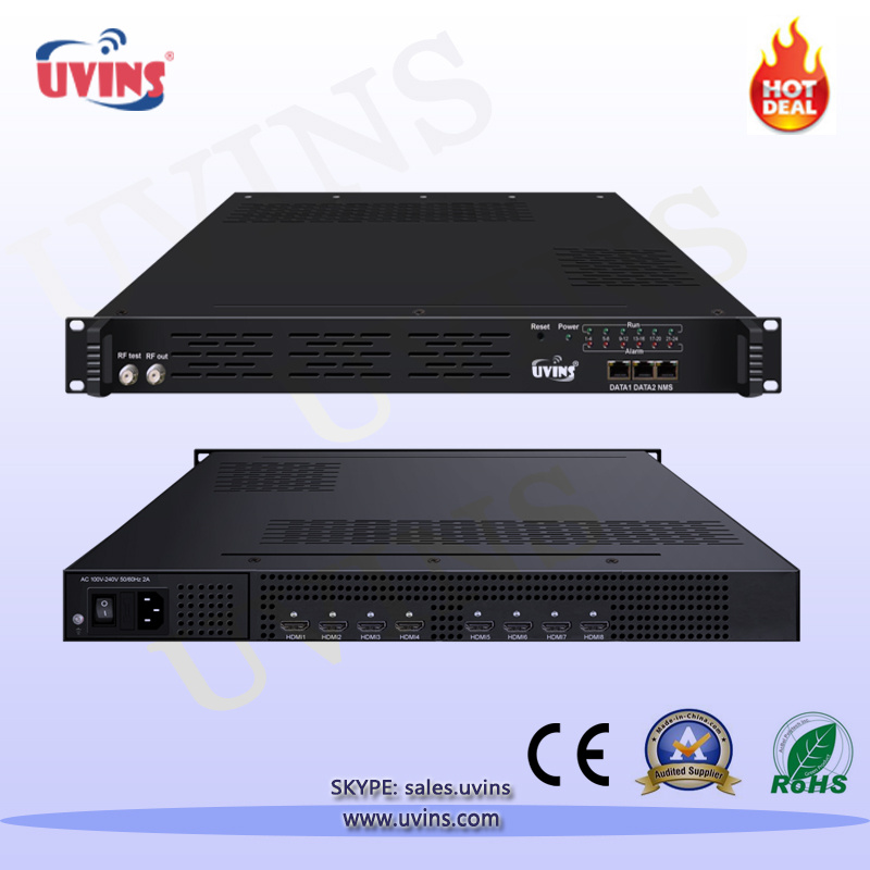 Product OverviewUVDH-EM06 is a professional high integration device which includes encoding, multiplexing, scrambling and modulation. It supports 4/8/12 HDMI input, one DVB-C tuner input and 128 IP input with Data1 (GE) and Data2 (FE) port. It also supports DVB-C/T RF out with 4 adjacent carries, an......