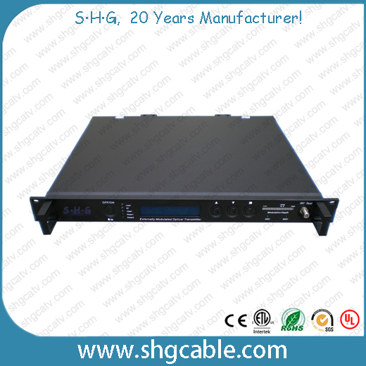SHG HT-OT-1550 series 1550nm external modulated fiber optical transmitter adopts low-noise 1550nm DFB laser. LiNb03 external modulator, advanced pre-distortion technology and perfect microprocessor automatic real-time monitoring circuitry to ensure high performance. It is widely used in large or medium sized HFC optical fiber transmission network