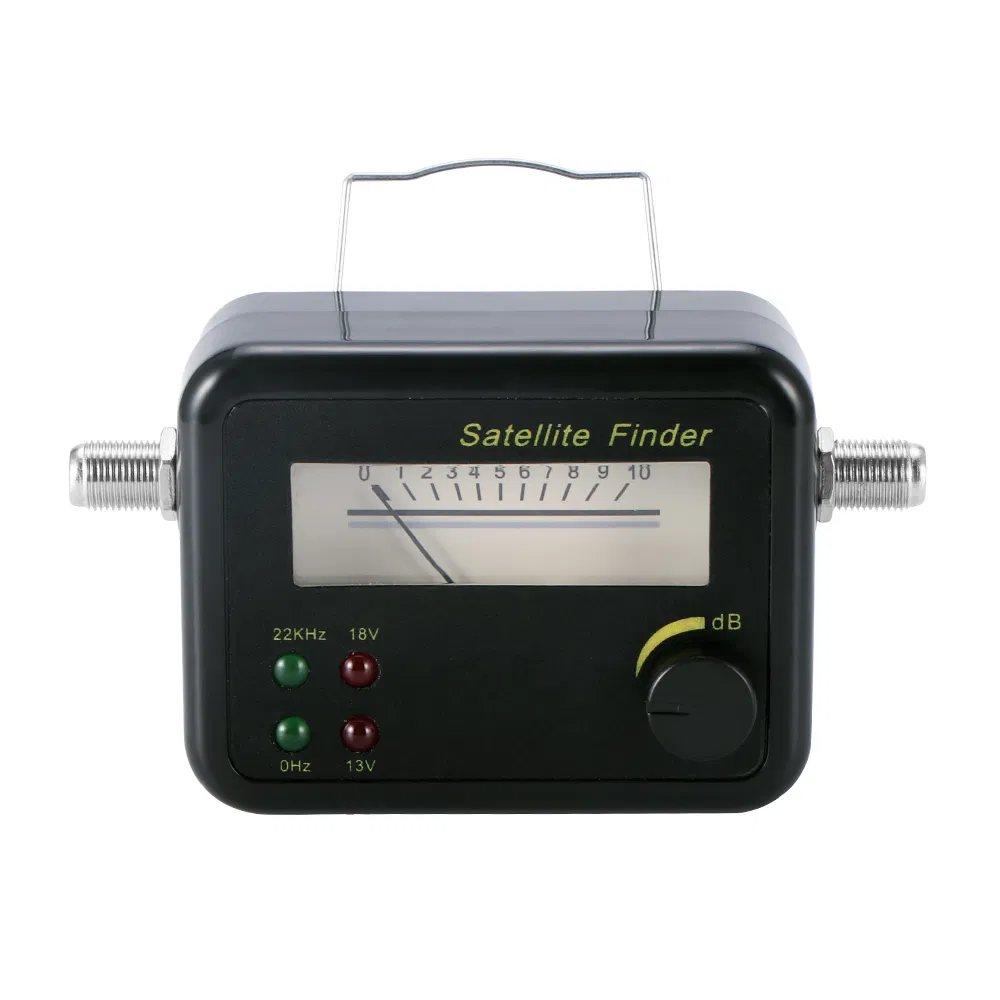 4 LED Lights Displayed 950-2150MHz Satellite Finder Application:1. Enhance the television signal2. Enhance the television image clarity3. Reduce the TV noise4. It used to find the satellite signalNote:1. To avoid a continuous full scale reading, do not use the satellite finder directly in front of t......